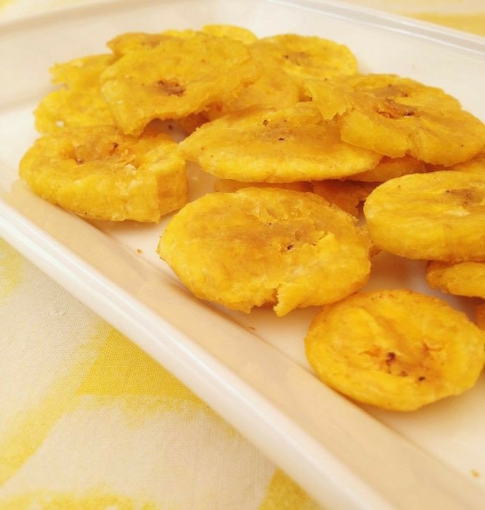 4. Ponemos a calentar el aceite. Ahora, pasamos los patacones por el agua de ajo con limón y una vez el aceite este caliente, los freímos.