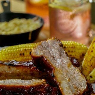 1. En una olla con agua hirviendo agregar las costillas de cerdo por unos 20 minutos